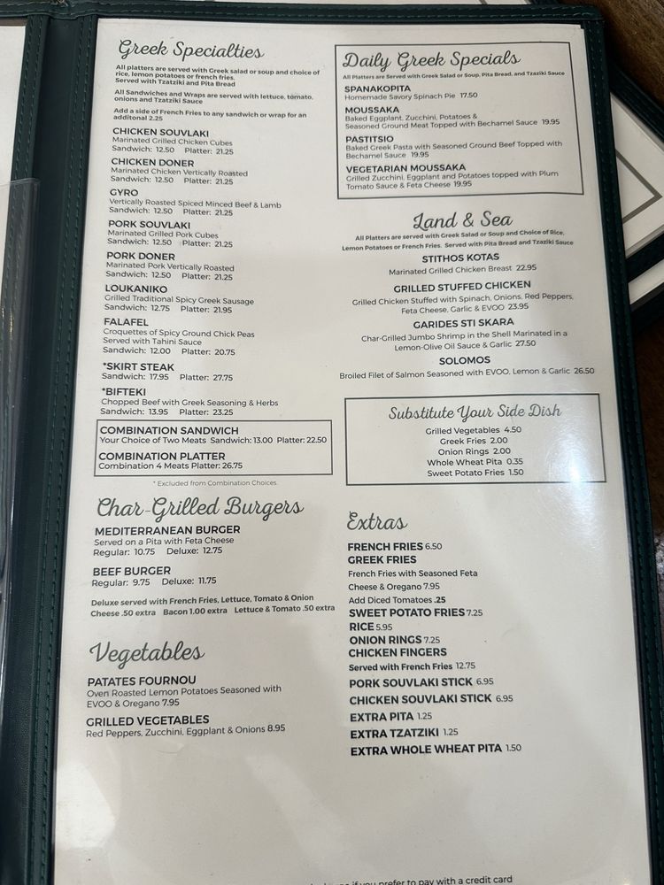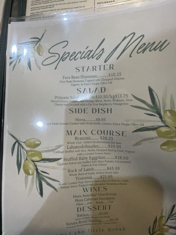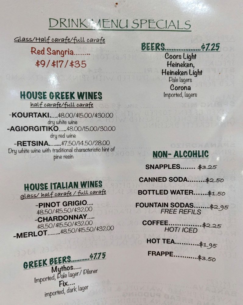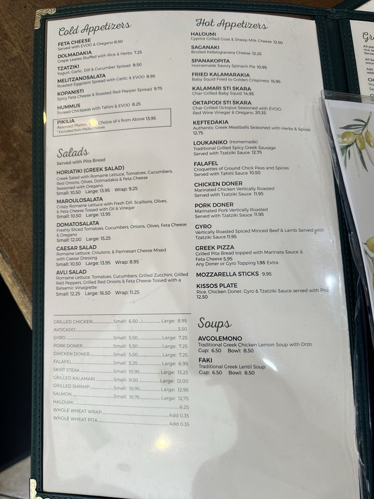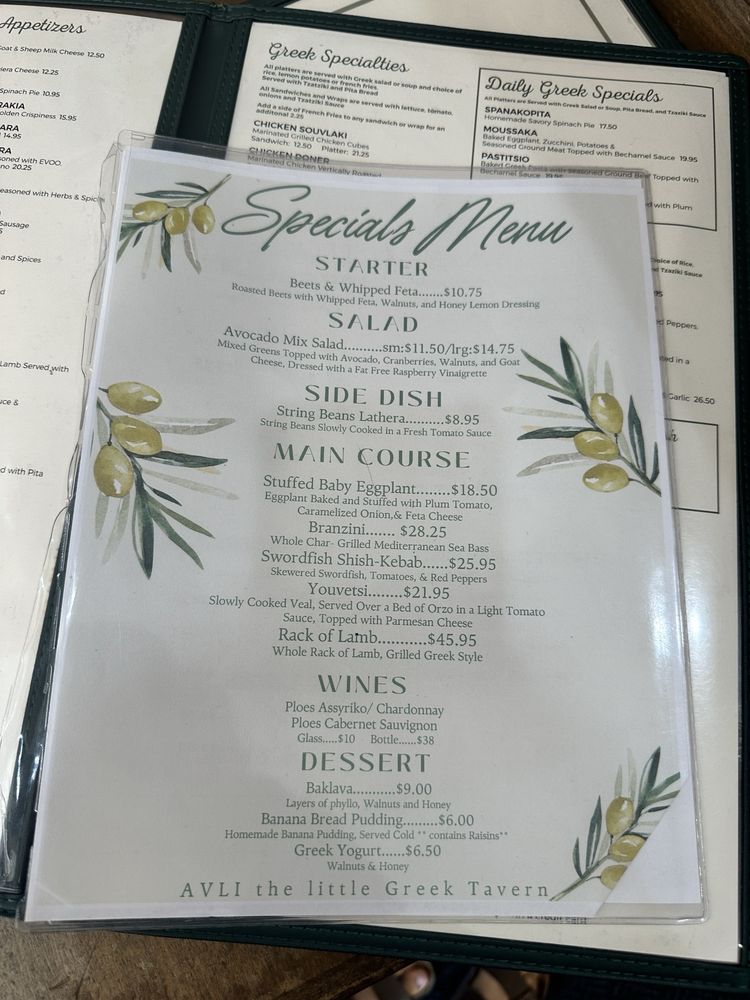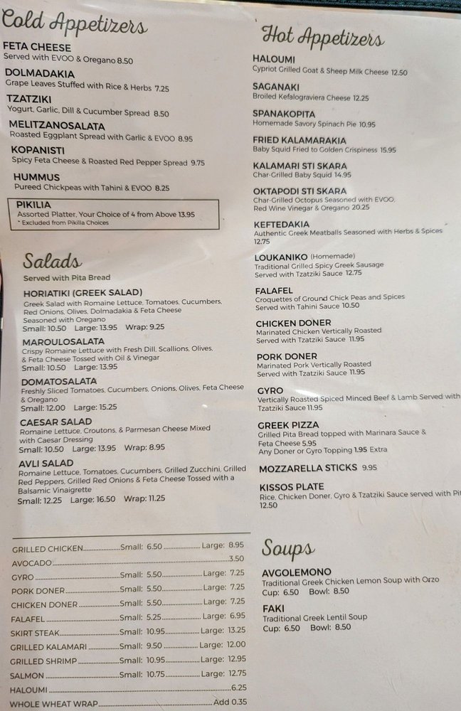 Introducing the menu at Avli The Little Greek Tavern, a charming spot in Bayside, NY. With a focus on Greek and Mediterranean cuisine, this restaurant offers a variety of wraps and traditional dishes. Customers rave about the gyro sandwiches, moussaka, lemon potatoes, and octopus. The ambiance is cozy and inviting, with attentive service and generous portions. Vegan and limited vegetarian options are available, making it a great choice for all diners. The menu also features dinner specials, like grilled Branzino, and a selection of beer and wine. Don't miss out on the fried kalamari and red sangria to start your meal! Overall, Avli The Little Greek Tavern promises a delightful dining experience with its fresh, delicious food and welcoming atmosphere.