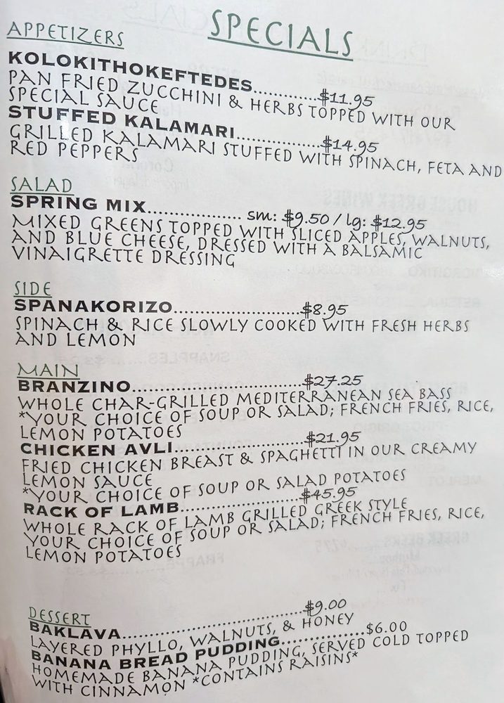 Daily Greek Specials